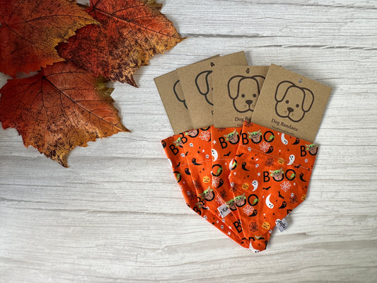 Cotton Pet Bandana with collar attachment - Leopard Print Pumpkins