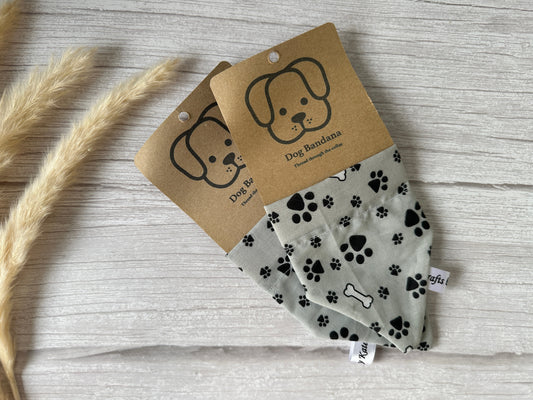 Cotton Pet Bandana with collar attachment - Grey Paws