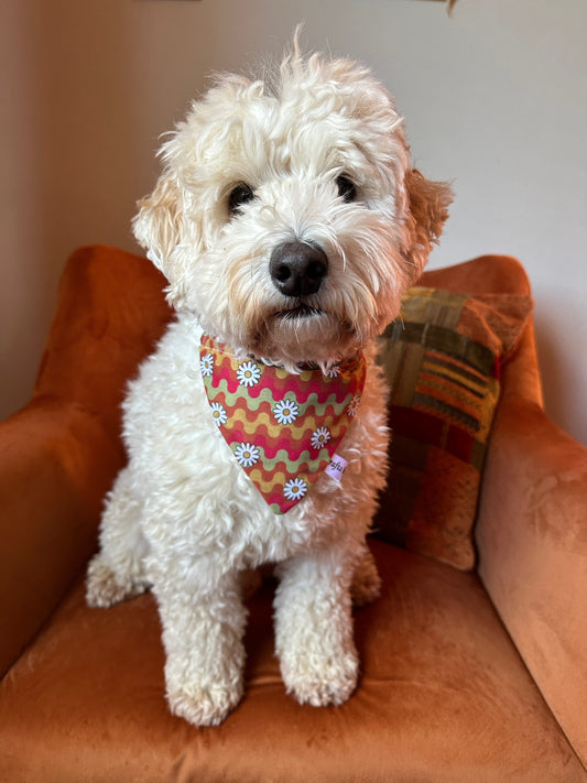 Cotton Pet Bandana with collar attachment - Hippie Daisies