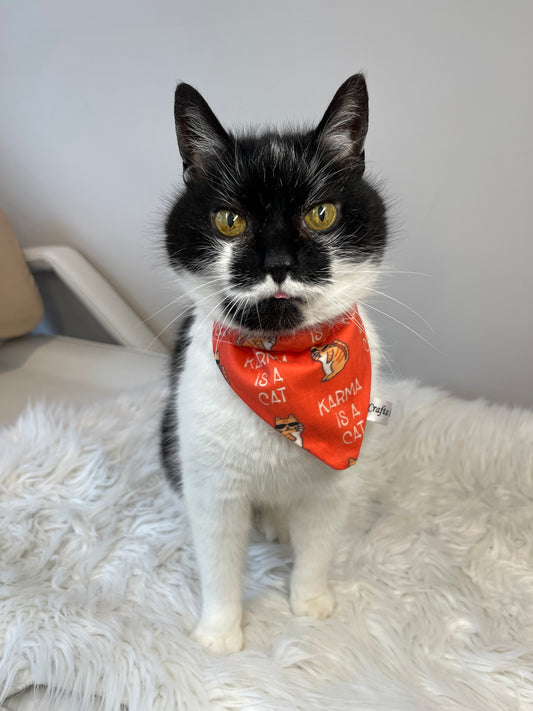 Cotton Pet Bandana with collar attachment - Karma is a Cat