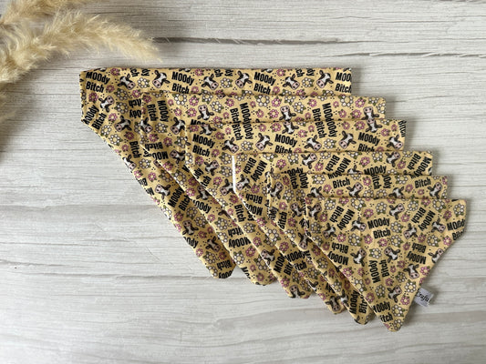 Cotton Pet Bandana with collar attachment - Moody Cow