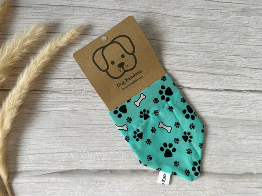 Cotton Pet Bandana with collar attachment - Mint Paws