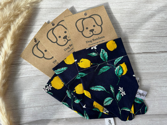 Cotton Pet Bandana with collar attachment - Navy Lemons