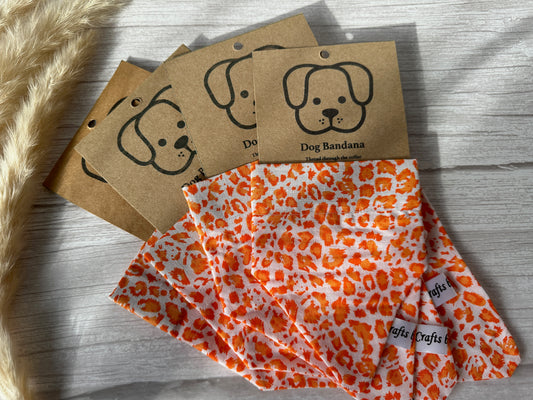 Cotton Pet Bandana with collar attachment - Orange Leopard Print