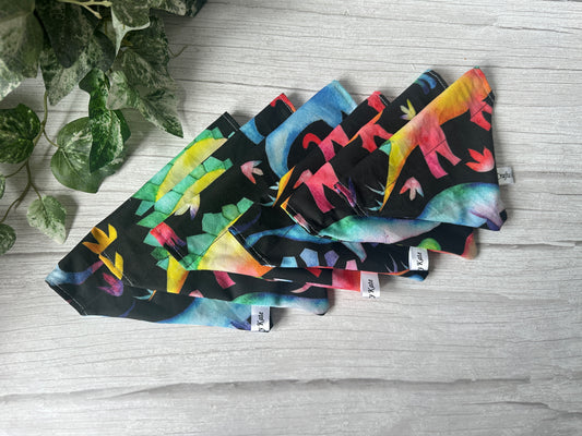 Cotton Pet Bandana with collar attachment - Rainbow Jurassic