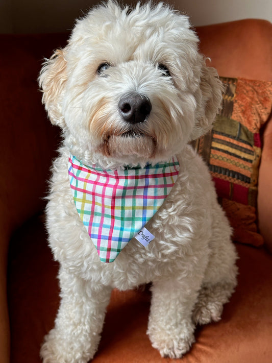 Cotton Pet Bandana with collar attachment - Rainbow Gingham