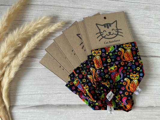 Cotton Pet Bandana with collar attachment - Rainbow Cats
