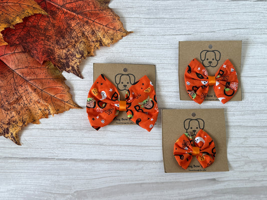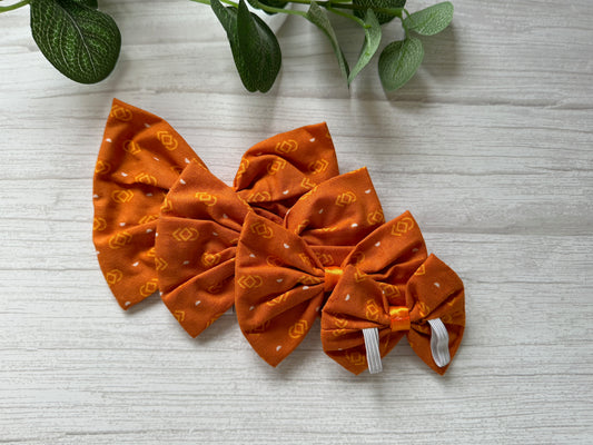 Cotton Pet Bow with collar attachment - Orange Aztec