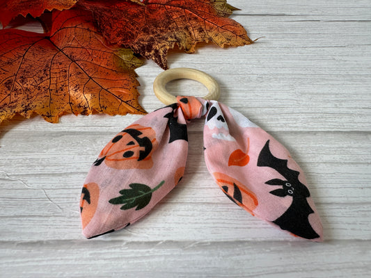 Cotton & Bamboo Baby Teething Rattle - Pink Halloween