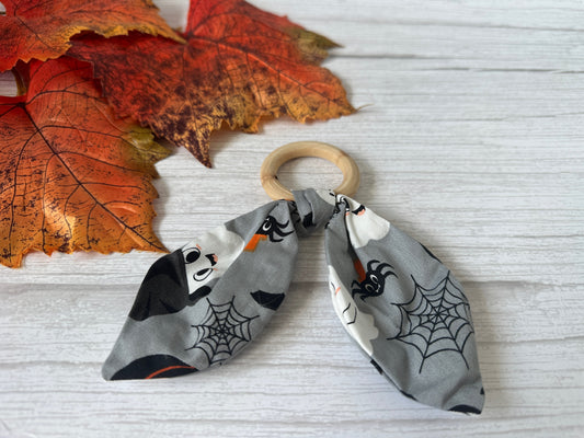 Cotton & Bamboo Baby Teething Rattle - Grey Halloween