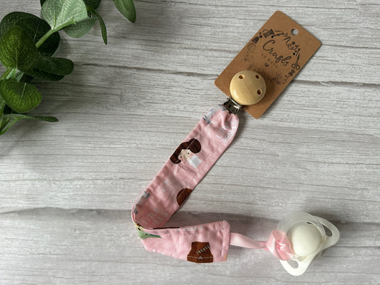 Cotton & Bamboo Baby Dummy Clip - Pink Spring Peter Rabbit