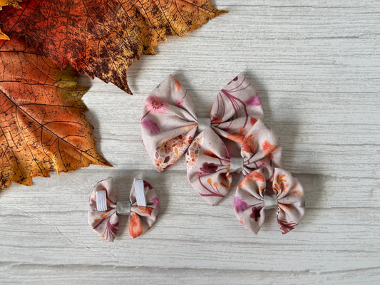 Cotton Pet Bow with collar attachment - Woodland Floral
