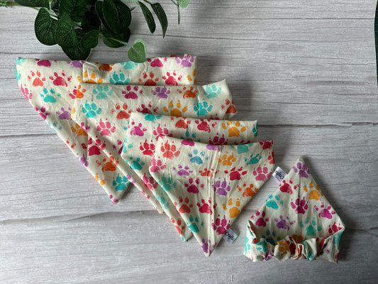 Cotton Pet Scrunchie Bandana - Caveman Rainbow Paw Print