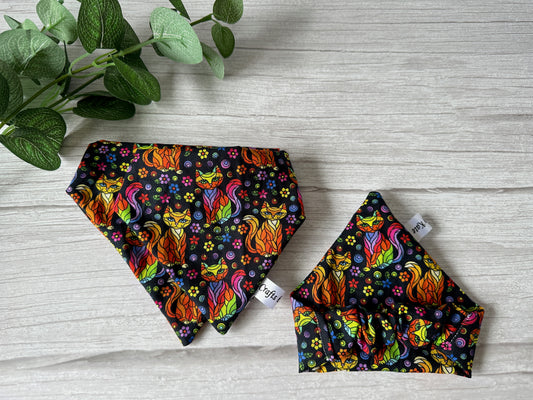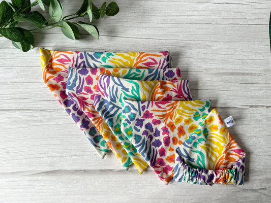Cotton Pet Scrunchie Bandana - Rainbow White Tiger Print