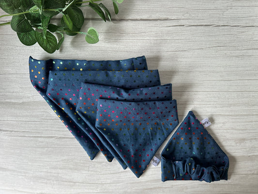 Cotton Pet Scrunchie Bandana - Rainbow Polka Dot Foil Print