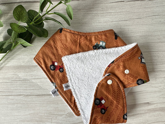 Cotton & Terry Towelling Baby Bandana Bib - Farm Tractors