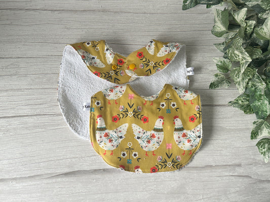 Cotton & Terry Towelling Baby Sets - Mustard Hens