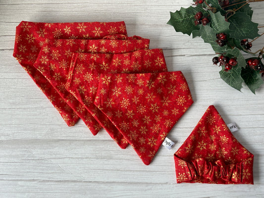 Cotton Pet Scrunchie Bandana - Red & Gold Snowflakes