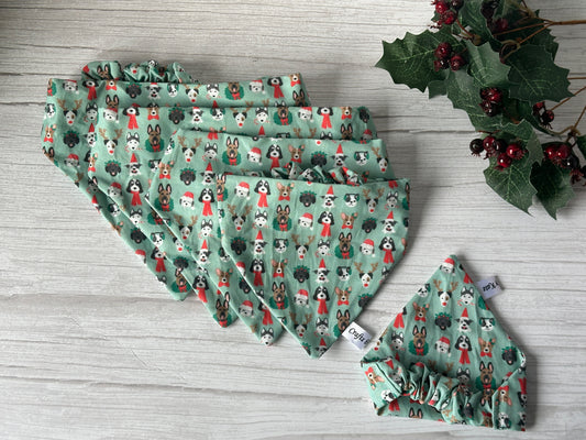 Cotton Pet Scrunchie Bandana - Puppy Christmas Party