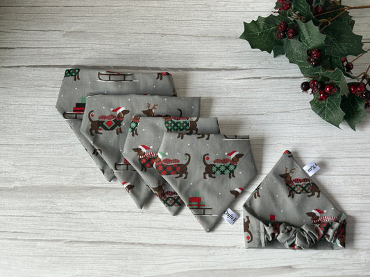Cotton Pet Scrunchie Bandana - Festive Sausage Dogs