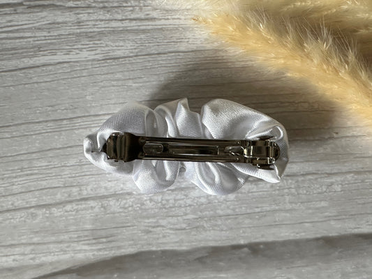 Silk French Barrette Scrunchie Clip - Ice White