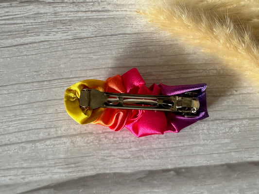 Silk French Barrette Scrunchie Clip - Bright Rainbow