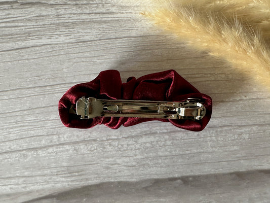 Silk French Barrette Scrunchie Clip - Maroon Red