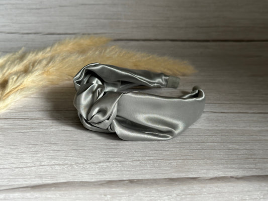 Silk Knotted Headband - Metallic Silver