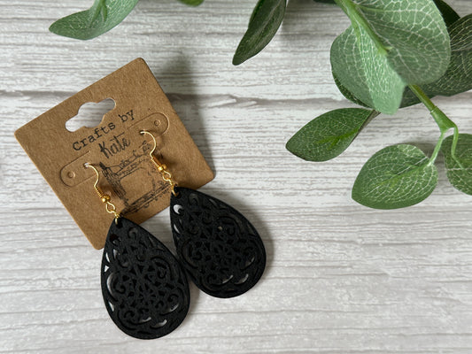 Handcrafted Wood Effect Gold Fishhook Earrings