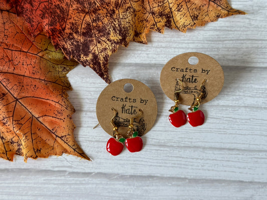 Handcrafted Harvest Apple Gold Plated Dangle & Hoop Earrings