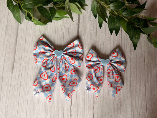 Pet Sailor Bows - Gingham Hearts