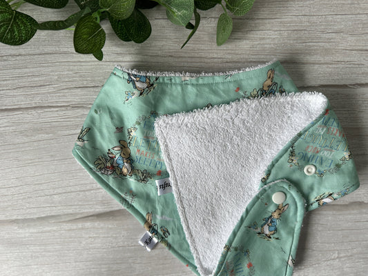 Cotton & Terry Towelling Baby Bandana Bib - Green Spring Peter Rabbit