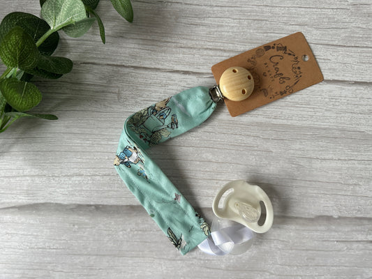 Cotton & Bamboo Baby Dummy Clip - Green Spring Peter Rabbit