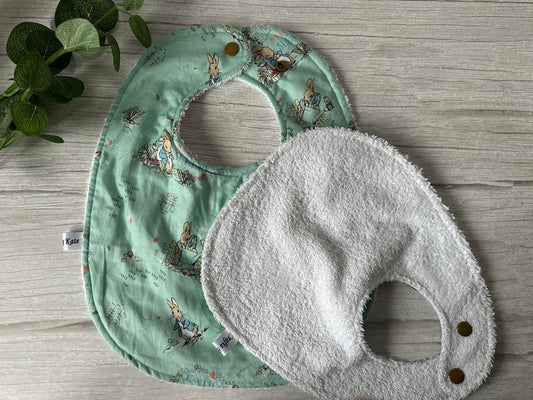 Cotton & Terry Towelling Baby Traditional Bib - Turquoise Spring Peter Rabbit