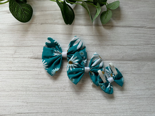 Cotton Pet Bow with collar attachment - Blue Daisies
