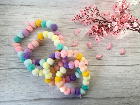 PomPom Pet Collar - Pastel Rainbow