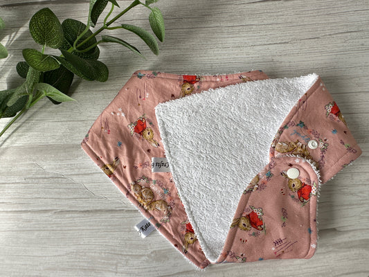 Cotton & Terry Towelling Baby Burping Cloth - Pink Spring Peter Rabbit