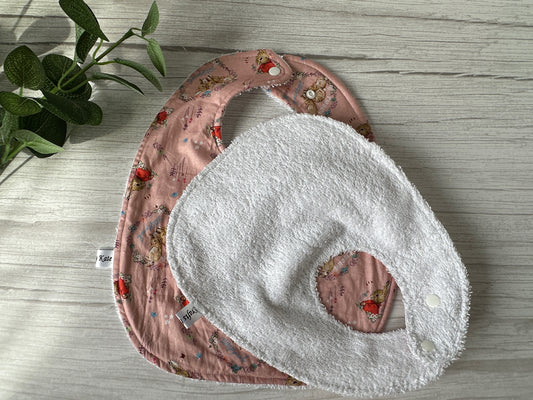 Cotton & Terry Towelling Baby Traditional Bib - Pink Spring Peter Rabbit