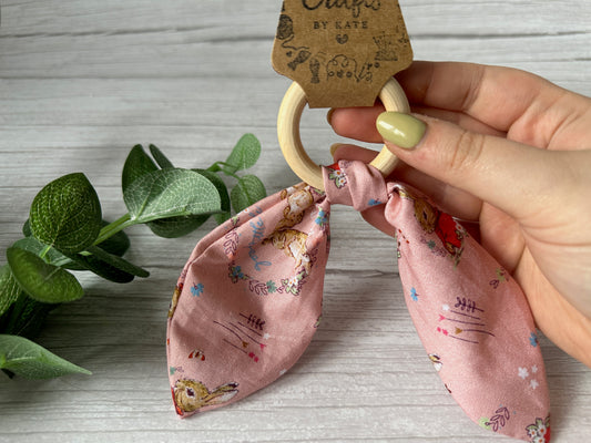 Cotton & Bamboo Baby Teething Rattle - Pink Spring Peter Rabbit