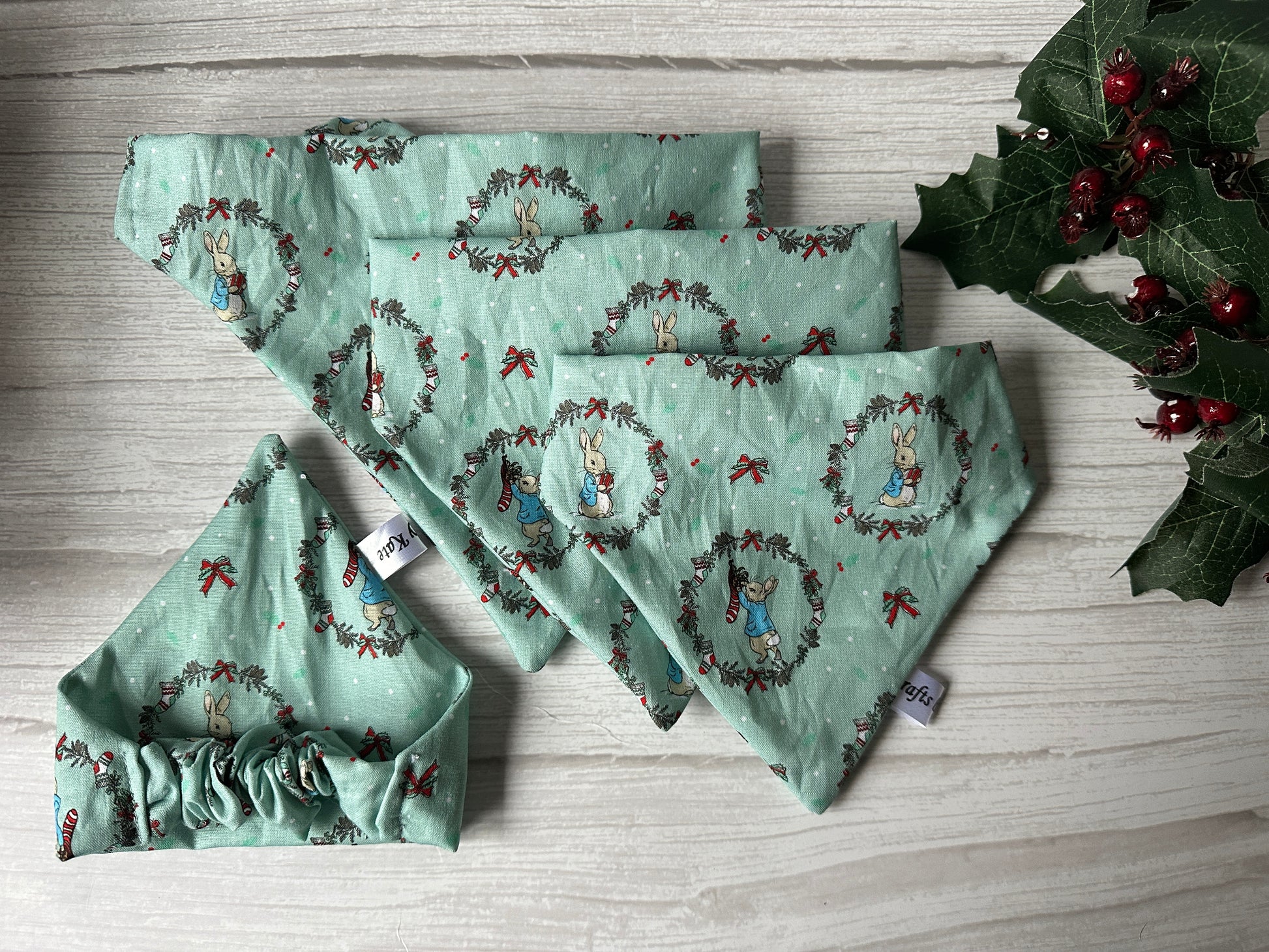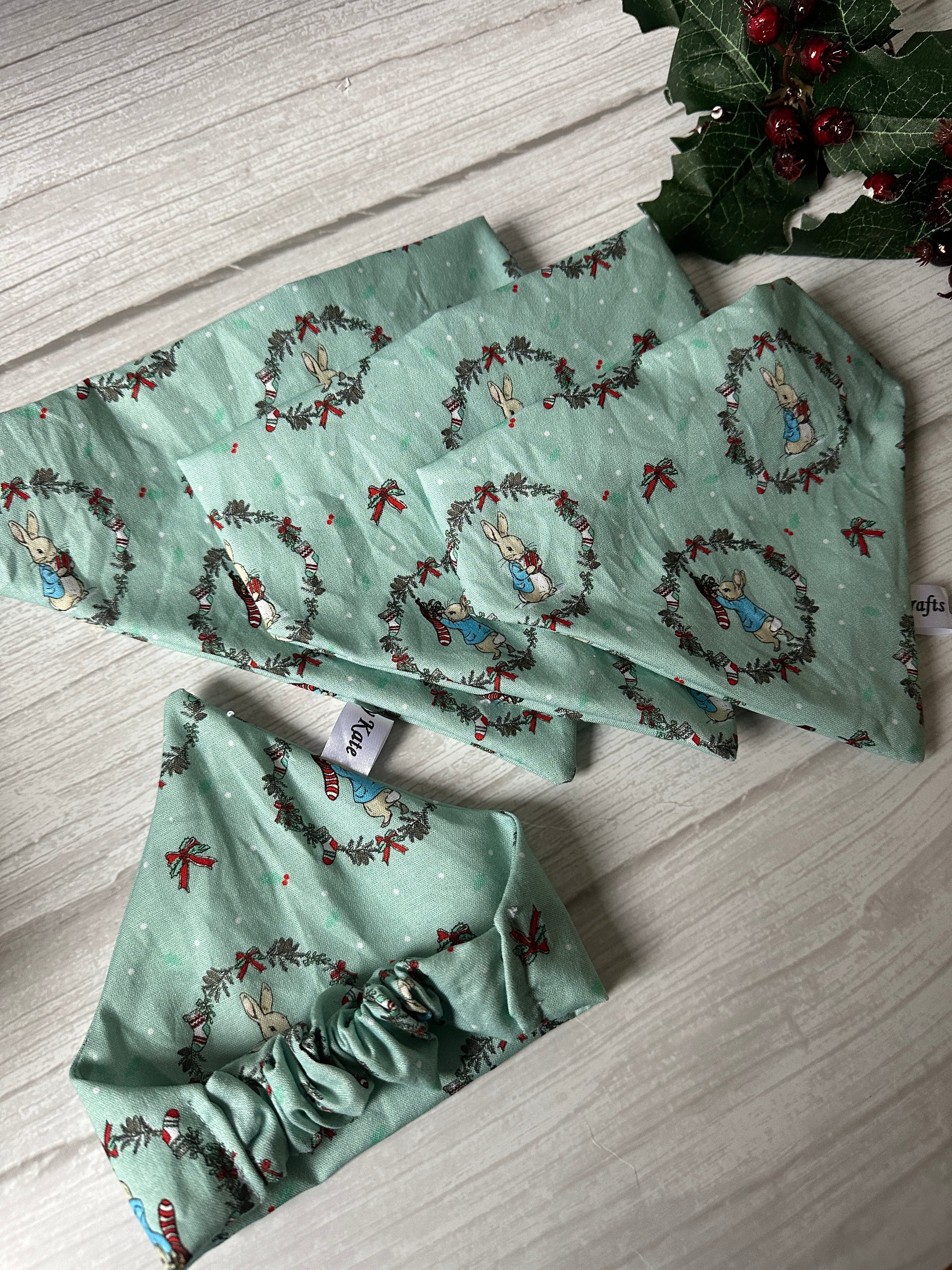 Cotton Pet Scrunchie Bandana - Peter Rabbit's Christmas Wreath