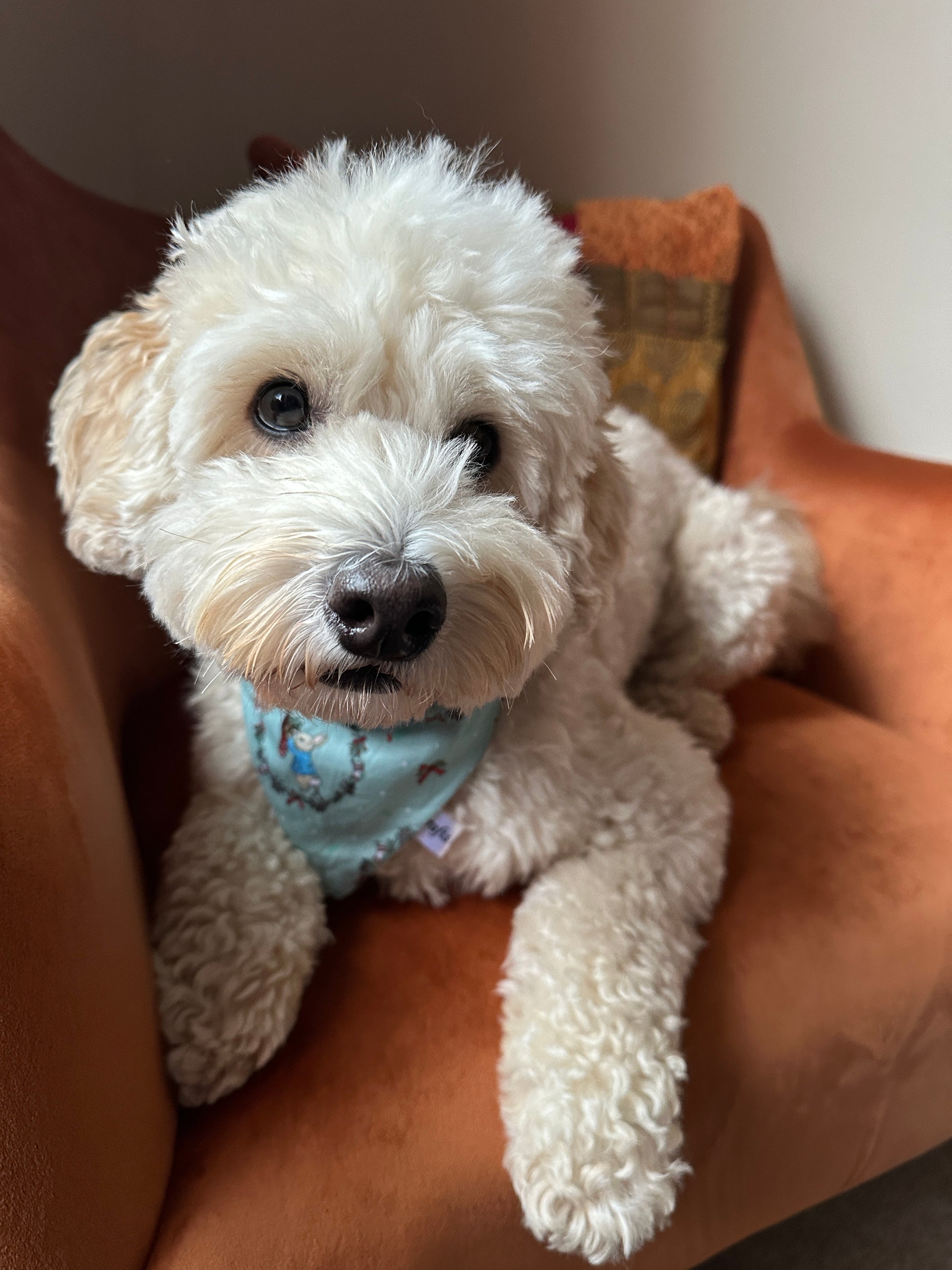Handcrafted Cotton Pet Scrunchie Bandana which stretches over the pets head.