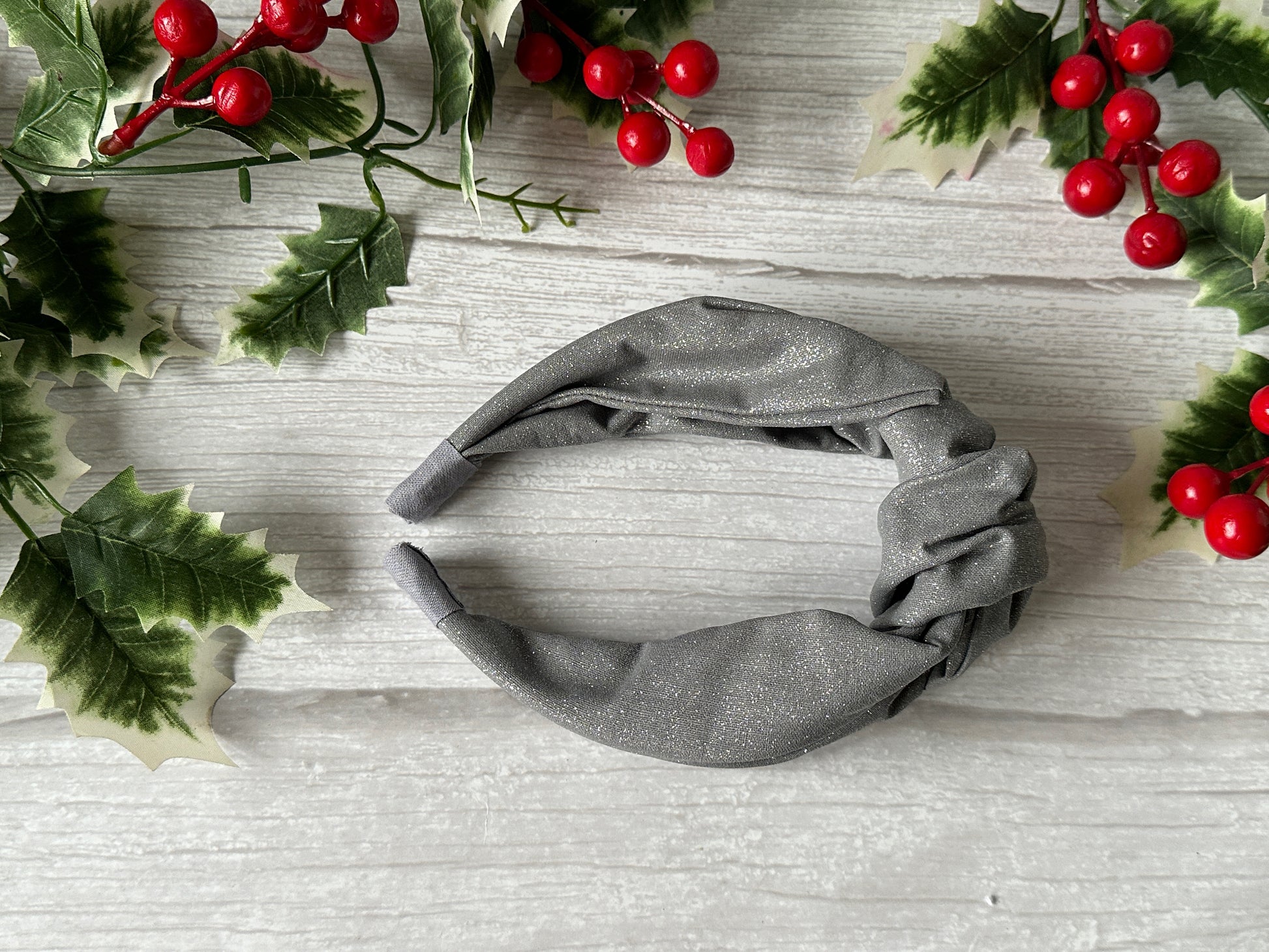 Handcrafted Luxury Statement Silver Sparkle Trees Knotted Headband with extra cushioning for long wear comfort