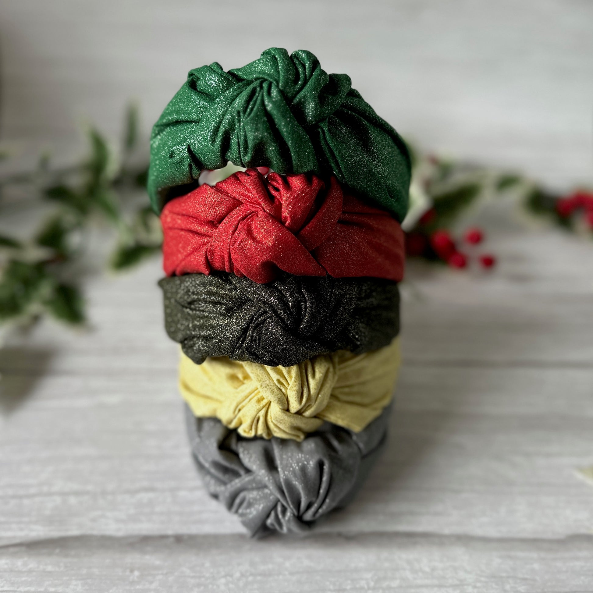 Handcrafted Luxury Statement Green Sparkle Trees Knotted Headband with extra cushioning for long wear comfort
