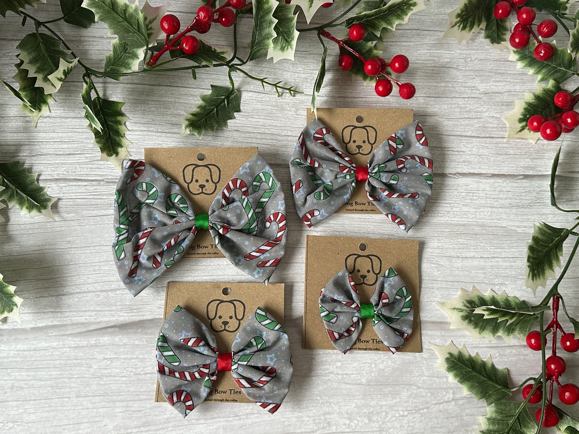 Cotton Pet Bow with collar attachment - Candy Canes