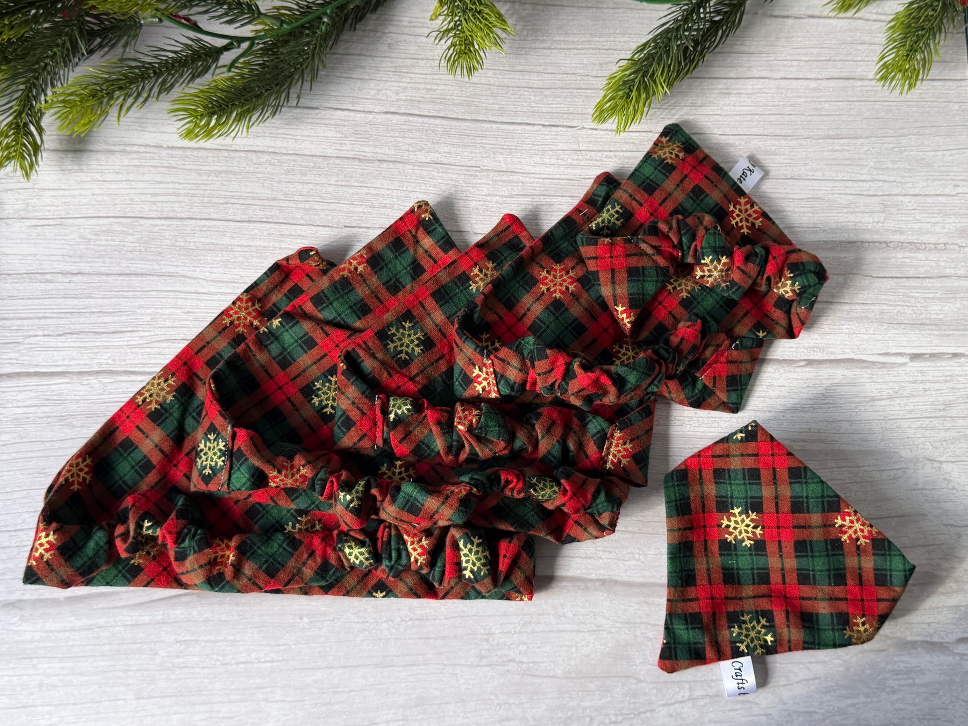 Cotton Pet Scrunchie Bandana - Green/Red tartan