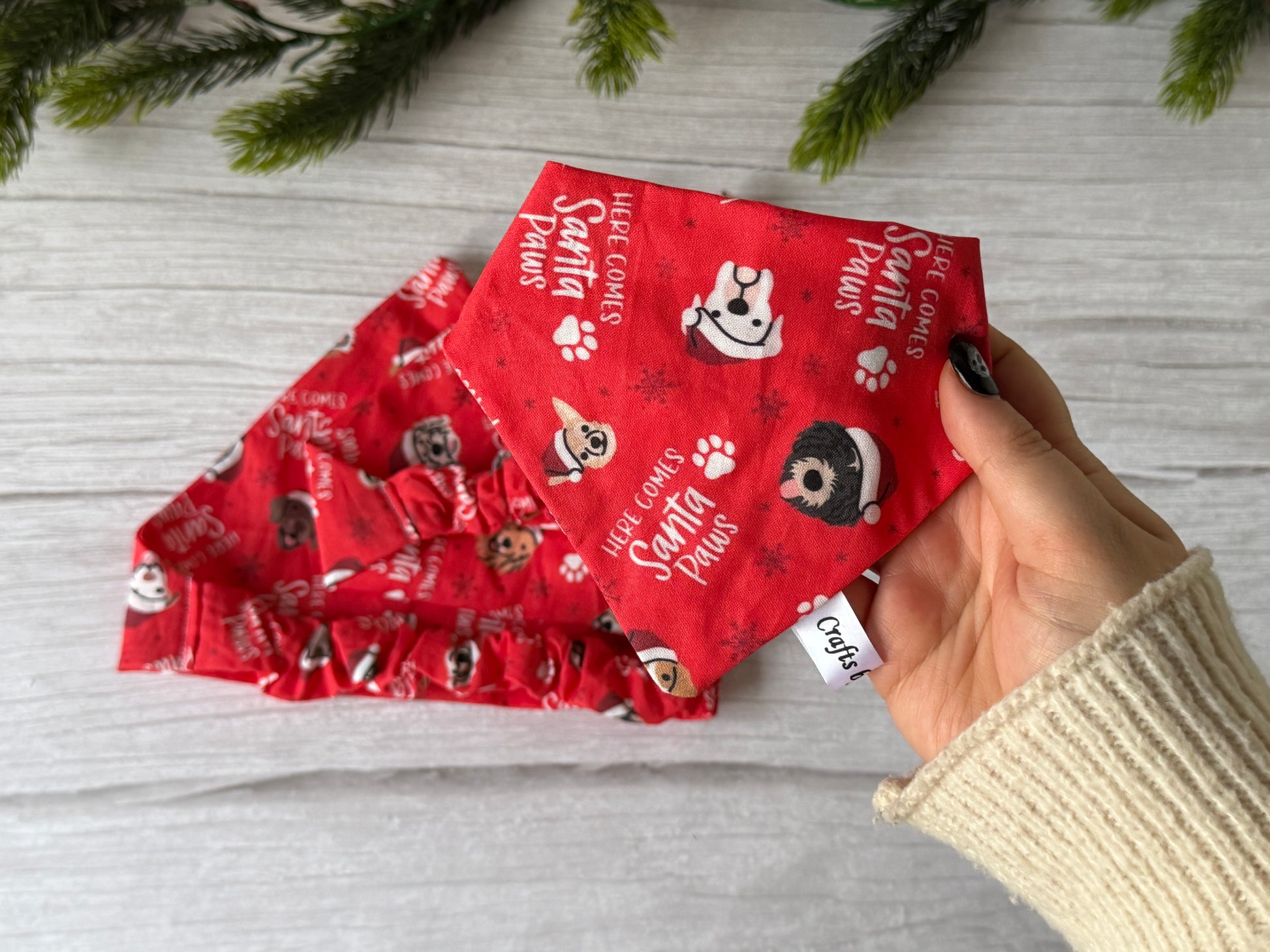 Cotton Pet Scrunchie Bandana - Here comes Santa Paws