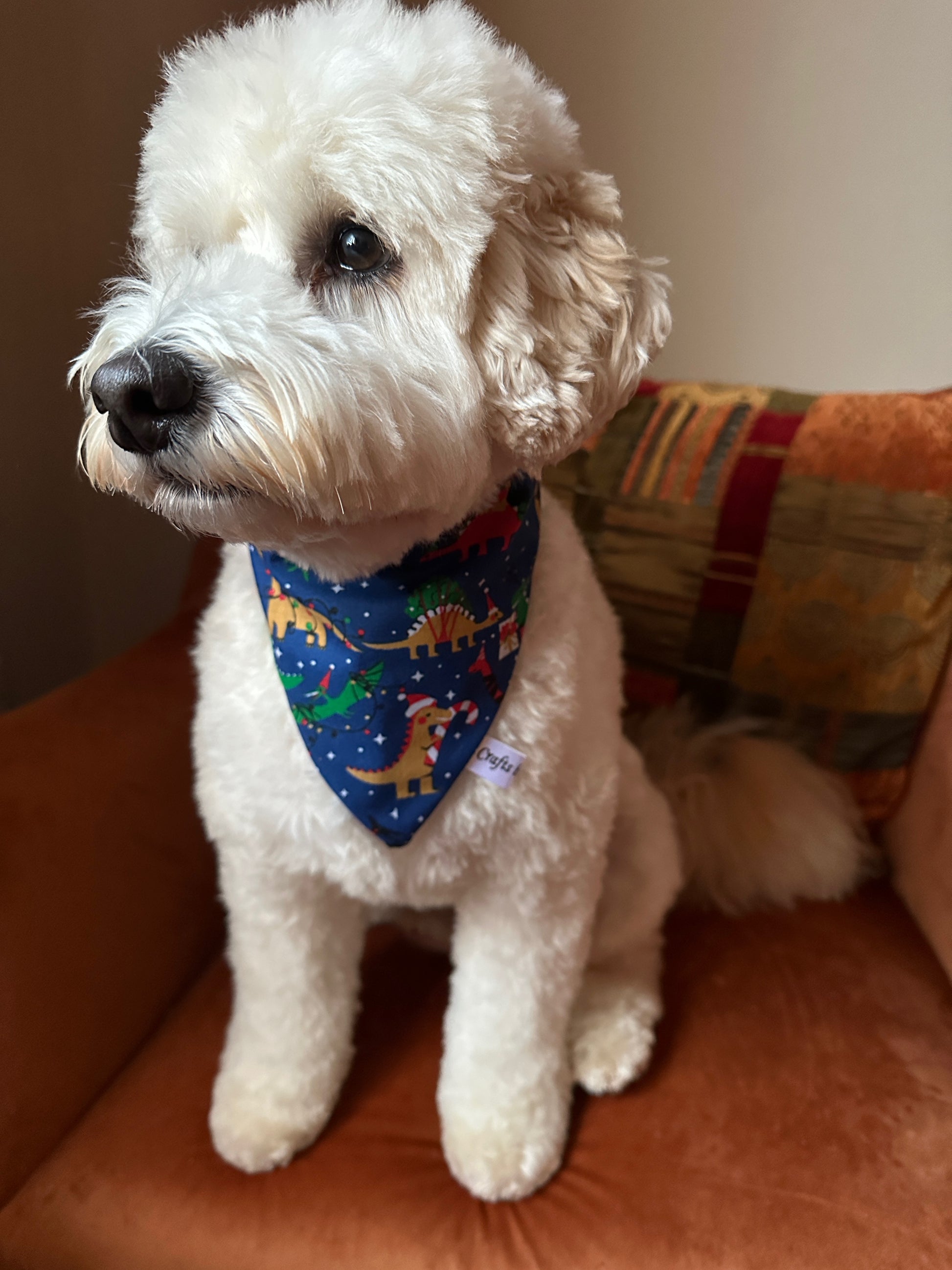 Handcrafted Cotton Pet Scrunchie Bandana which stretches over the pets head.