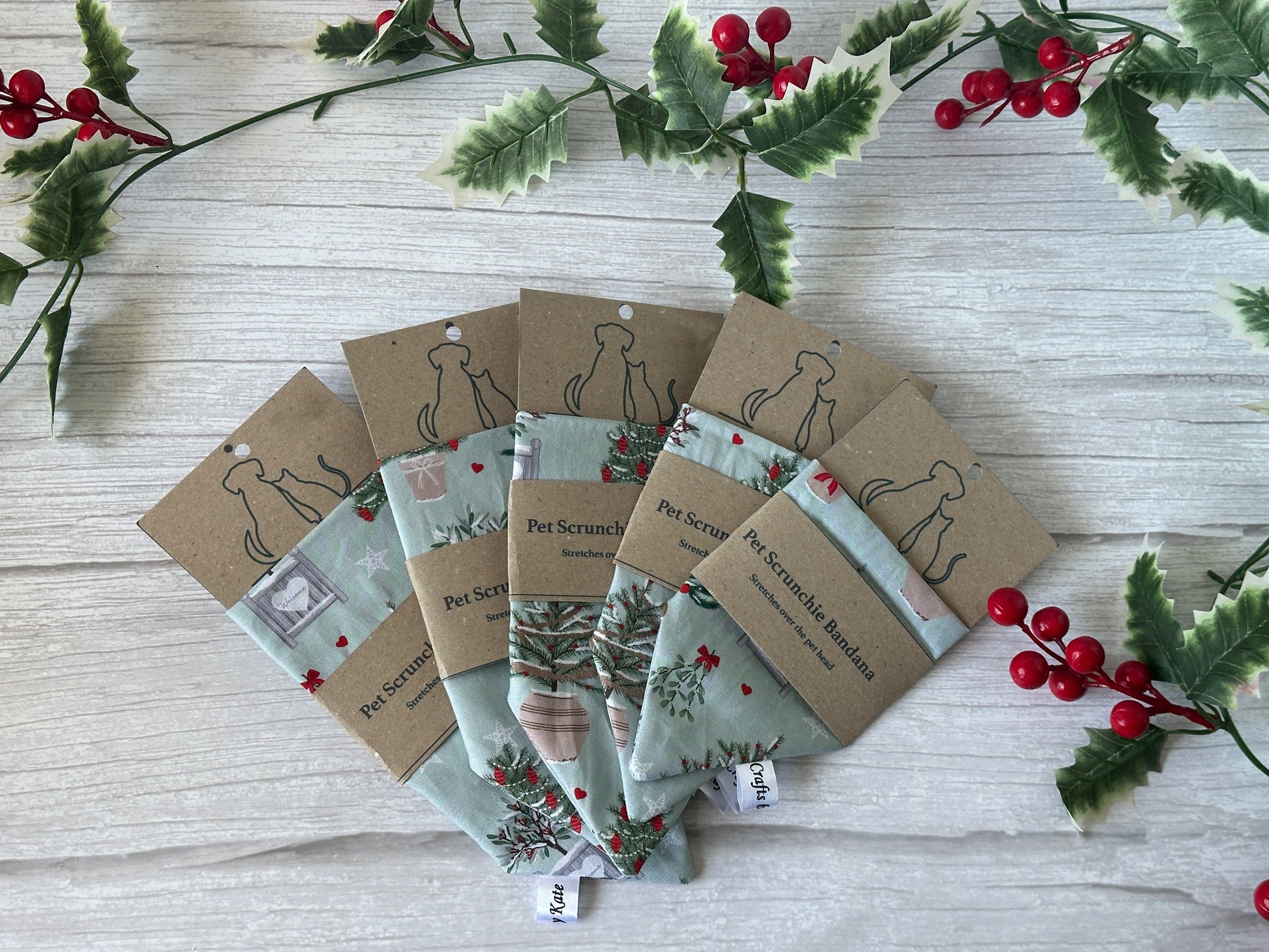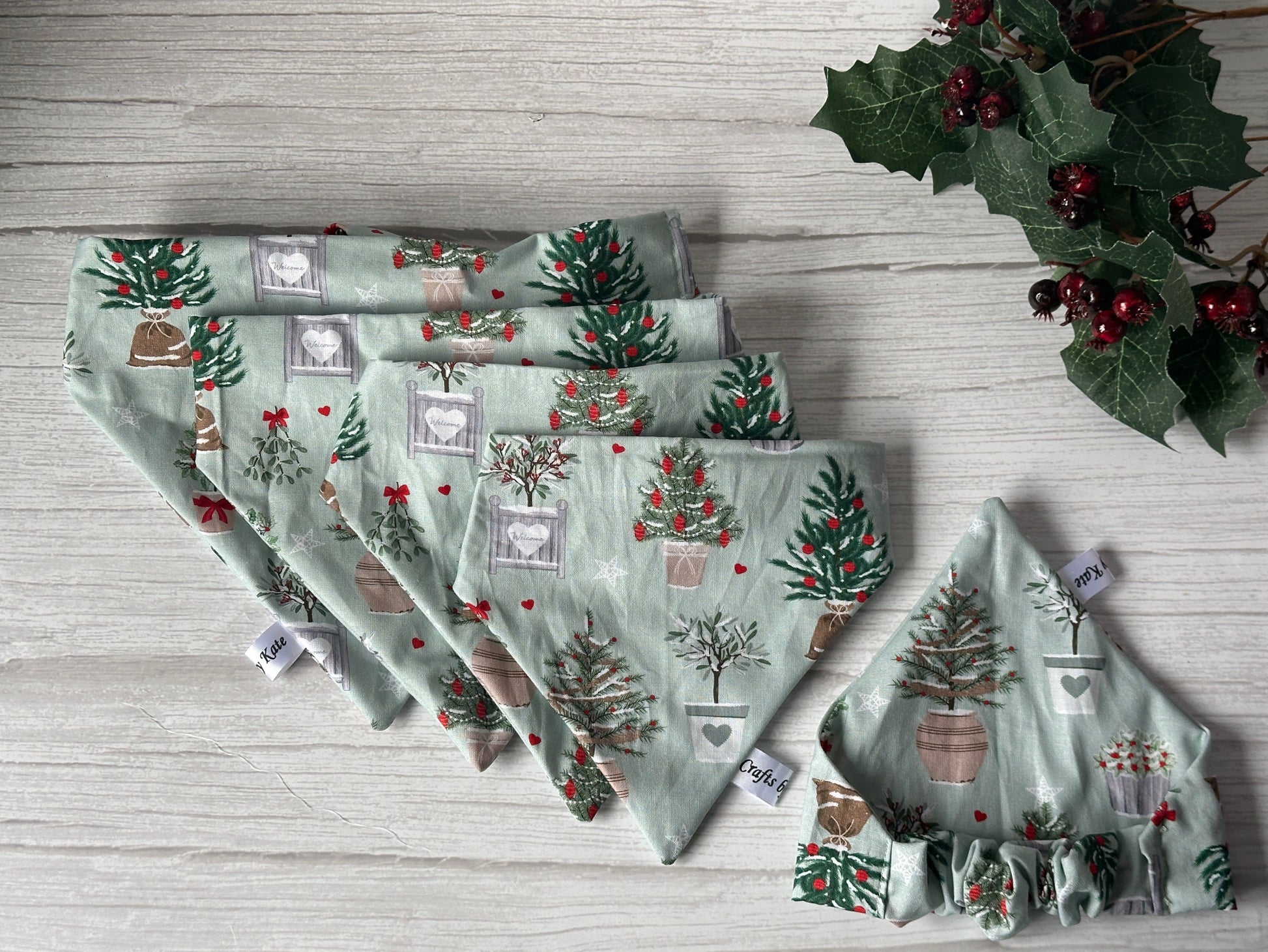 Cotton Pet Scrunchie Bandana - Christmas Cottage Core