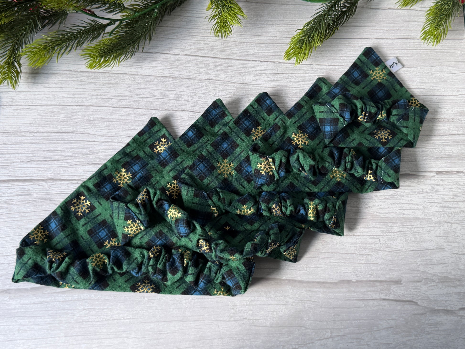 Cotton Pet Scrunchie Bandana - Green/Blue tartan