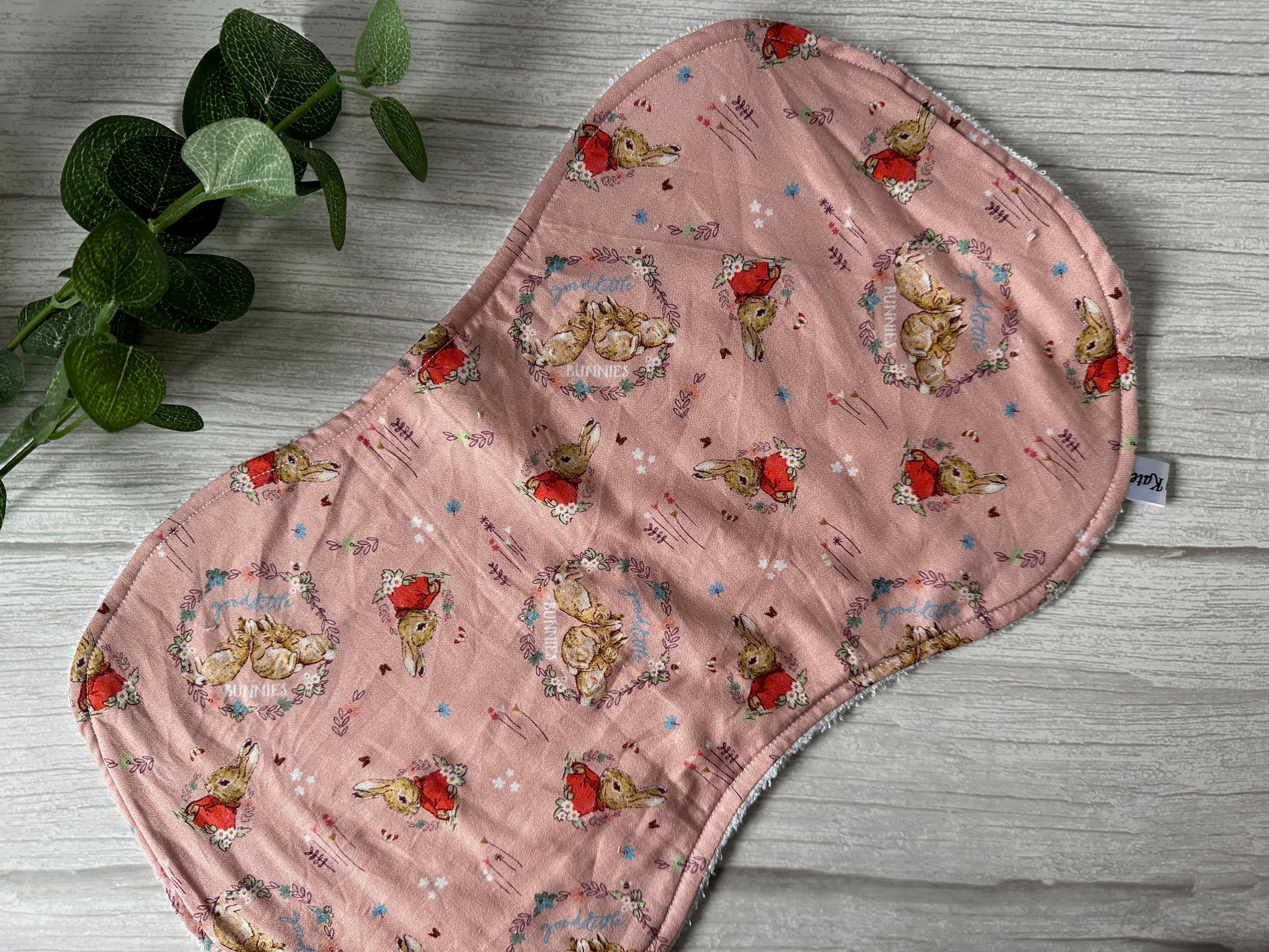 Cotton & Terry Towelling Baby Burping Cloth - Pink Spring Peter Rabbit